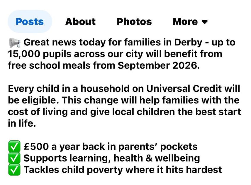 From the start of the 2026 school year, families across Derby will receive a welcome boost.