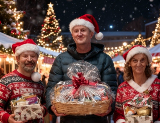 (And yes, the photo of Paul receiving the hampers has had a little festive AI magic… if it looks like a German Christmas market, that’s part of the fun! 📸✨)